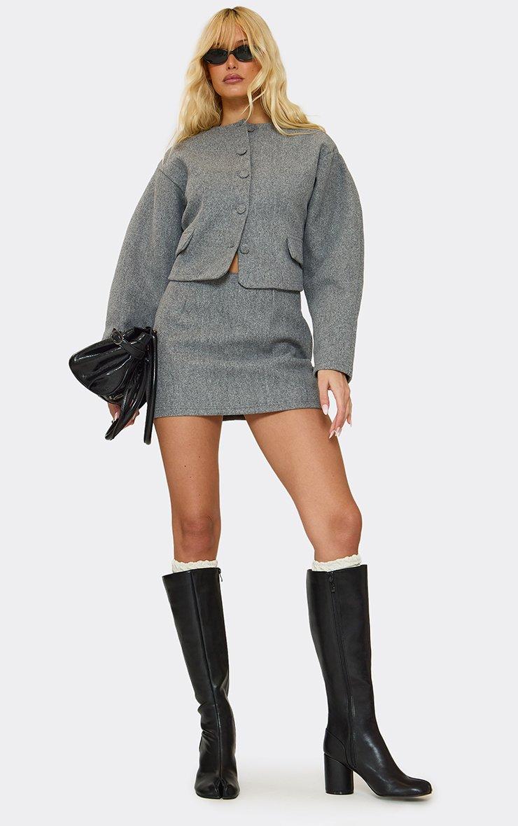 Mona Buckle Detail Knee High Boot In Black Faux Leather