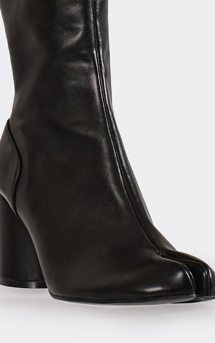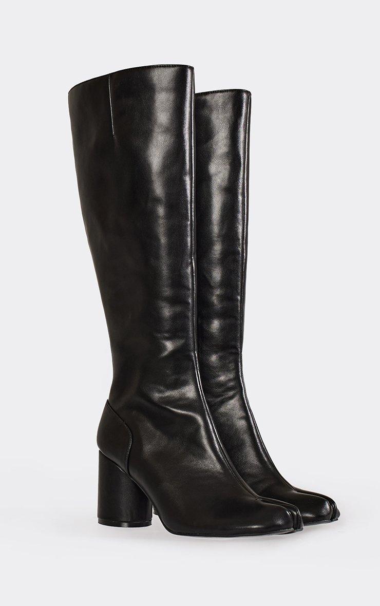 Caesar Chunky Block Heel Knee High Long Boot In Black Faux Leather