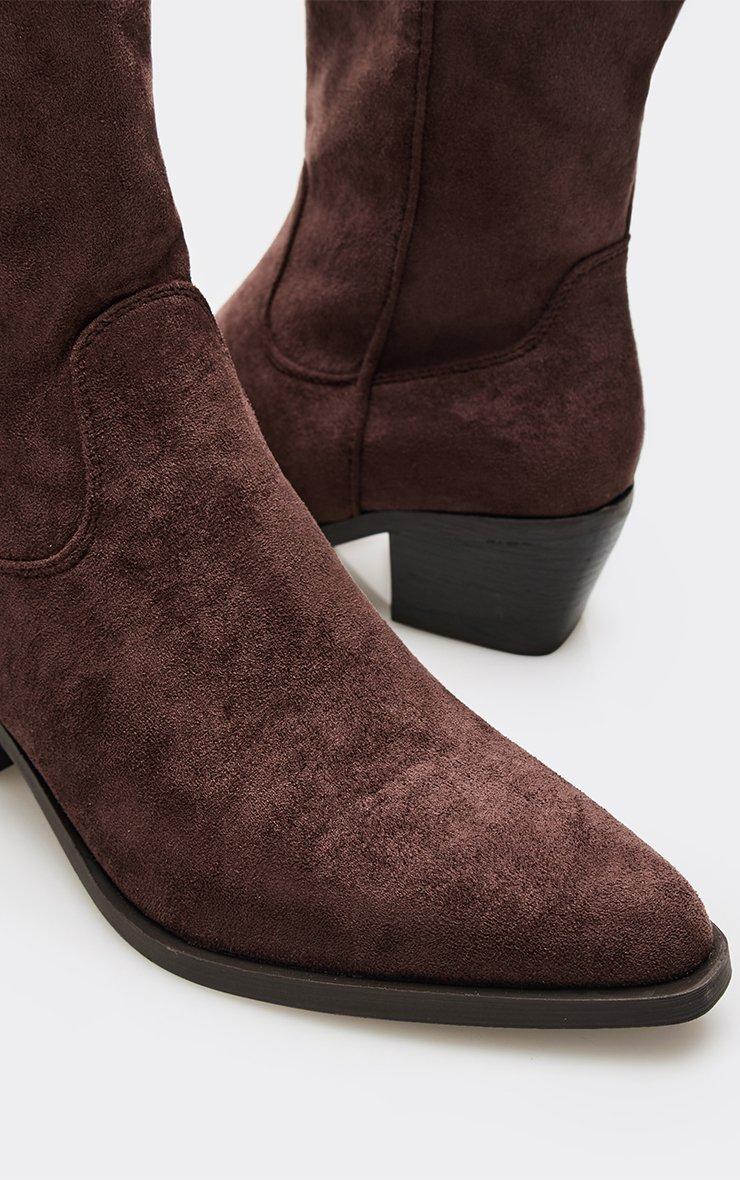 Twain Mid Calf Western Cowboy Boot In Brown Faux Suede