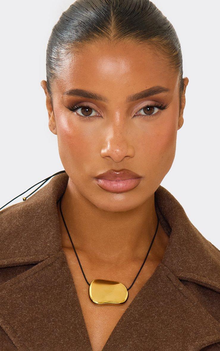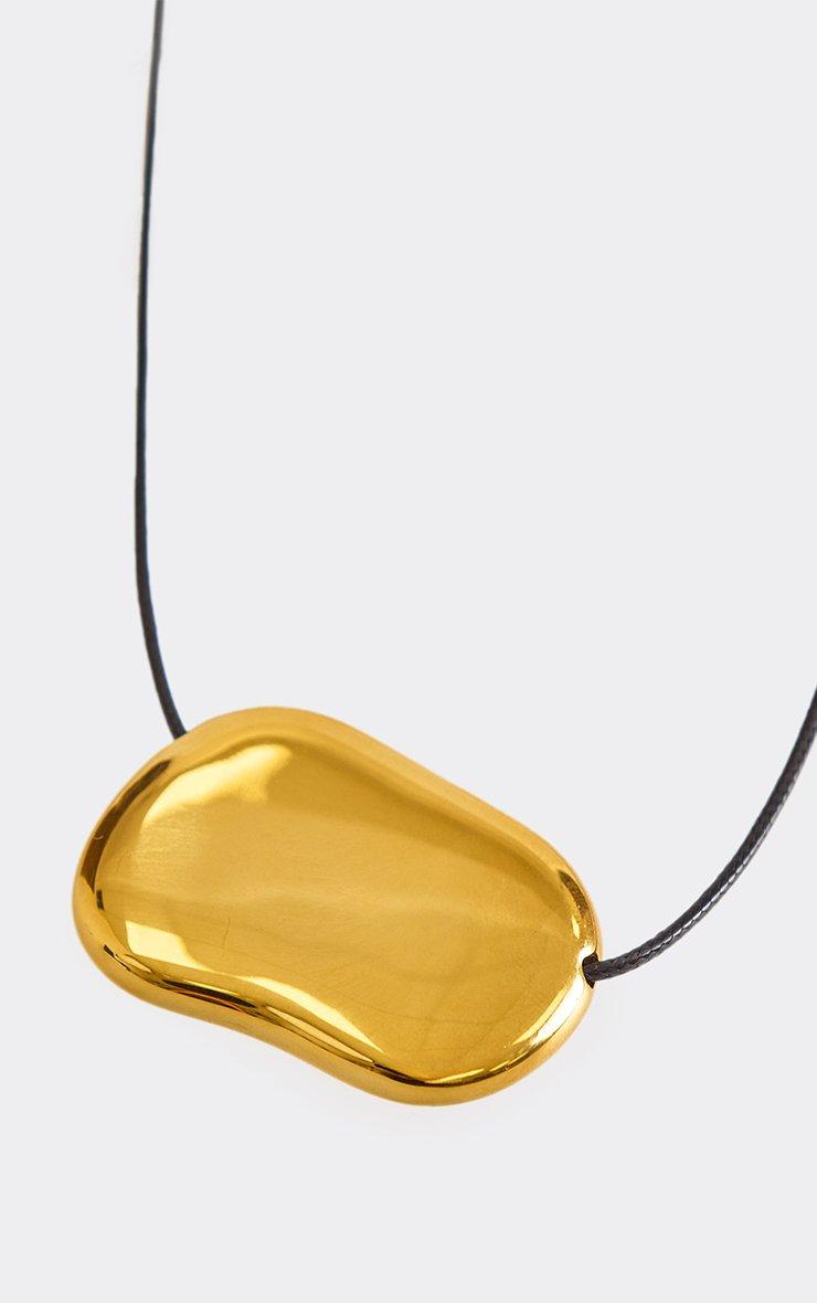 Cord Detail Chunky Irregular Shaped Pendant Necklace In Gold
