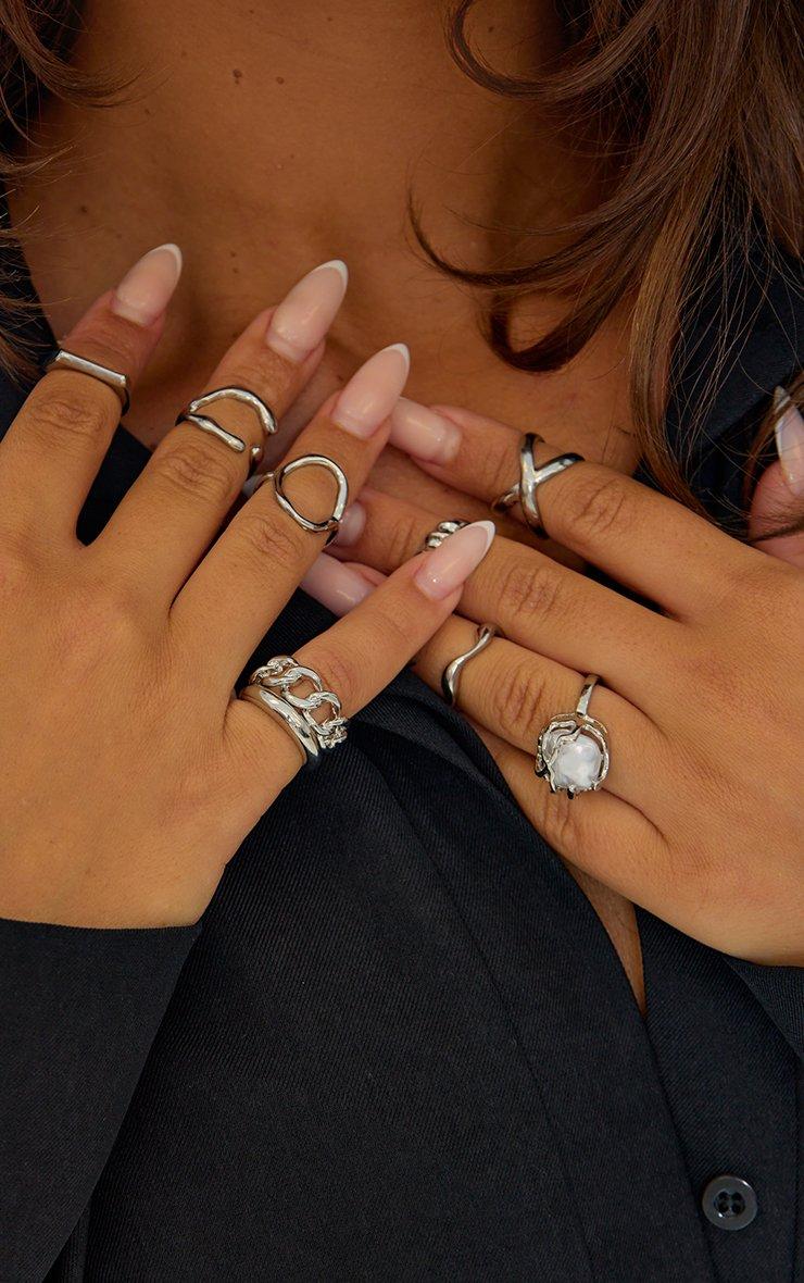 Chunky Layered Bubble Detail Multi Ring Pack In Silver