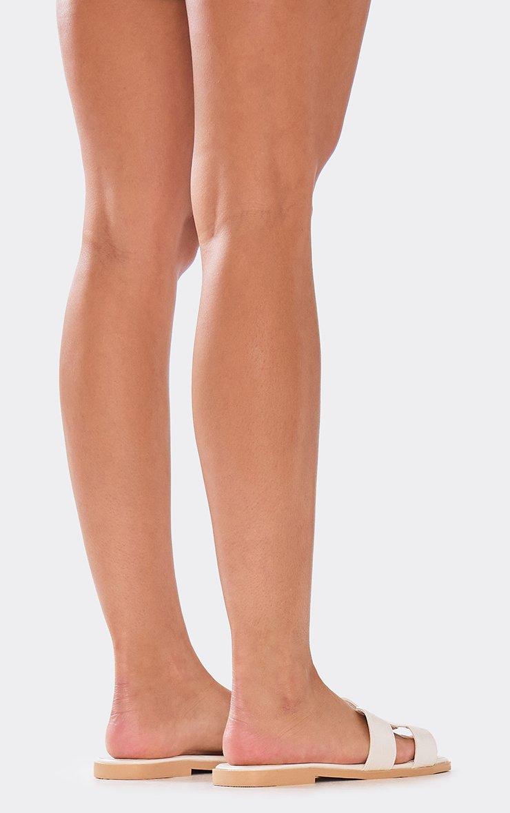 Addison Caged Flat Slider Sandal In White Faux Leather