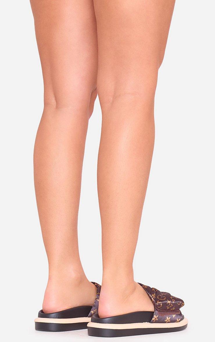 Pillow Velcro Strap Flatform Slider Sandal In Brown Print Nylon