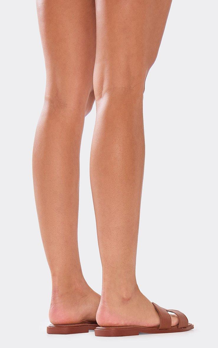 Manic Printed Detail Peep Toe Flatform Slider Sandal In Brown Fabric
