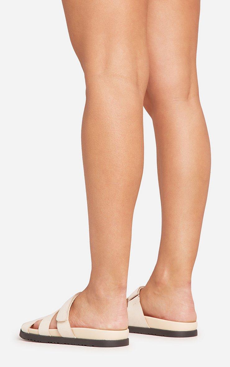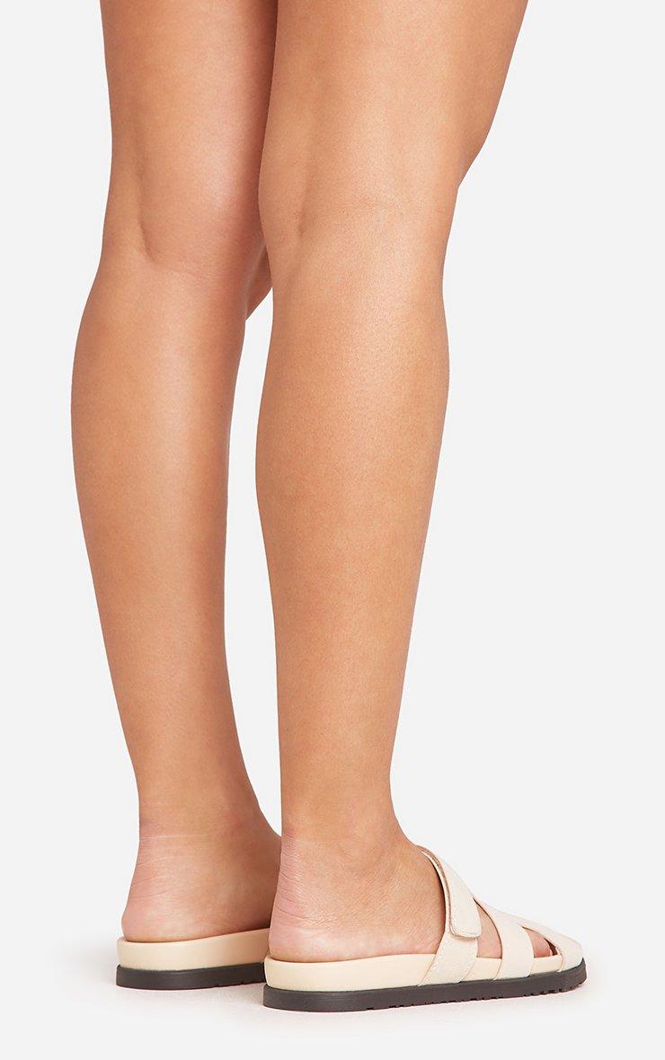 Valerie Gladiator Velcro Strap Flat Slider Sandal In Cream Faux Suede