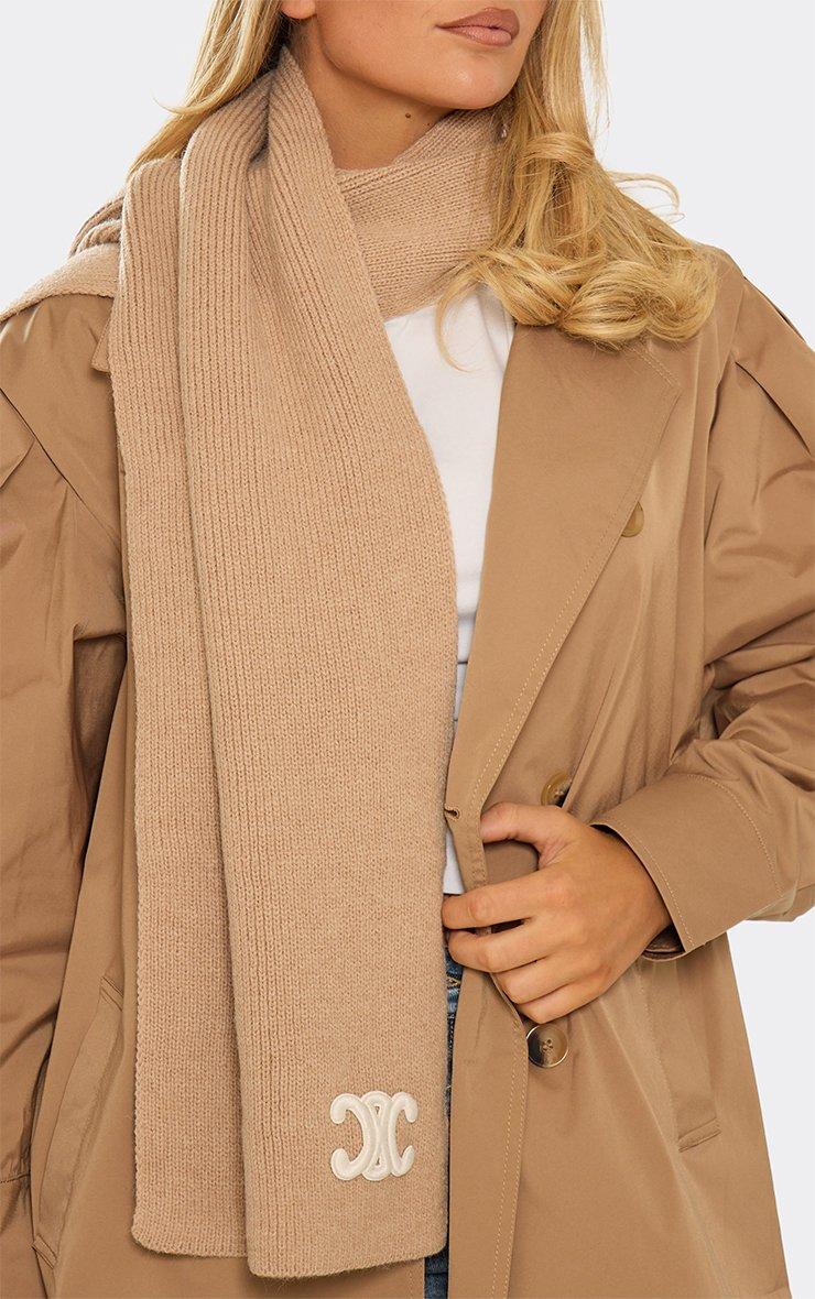 Tie Front Shawl Scarf In Black And Cream Stripe