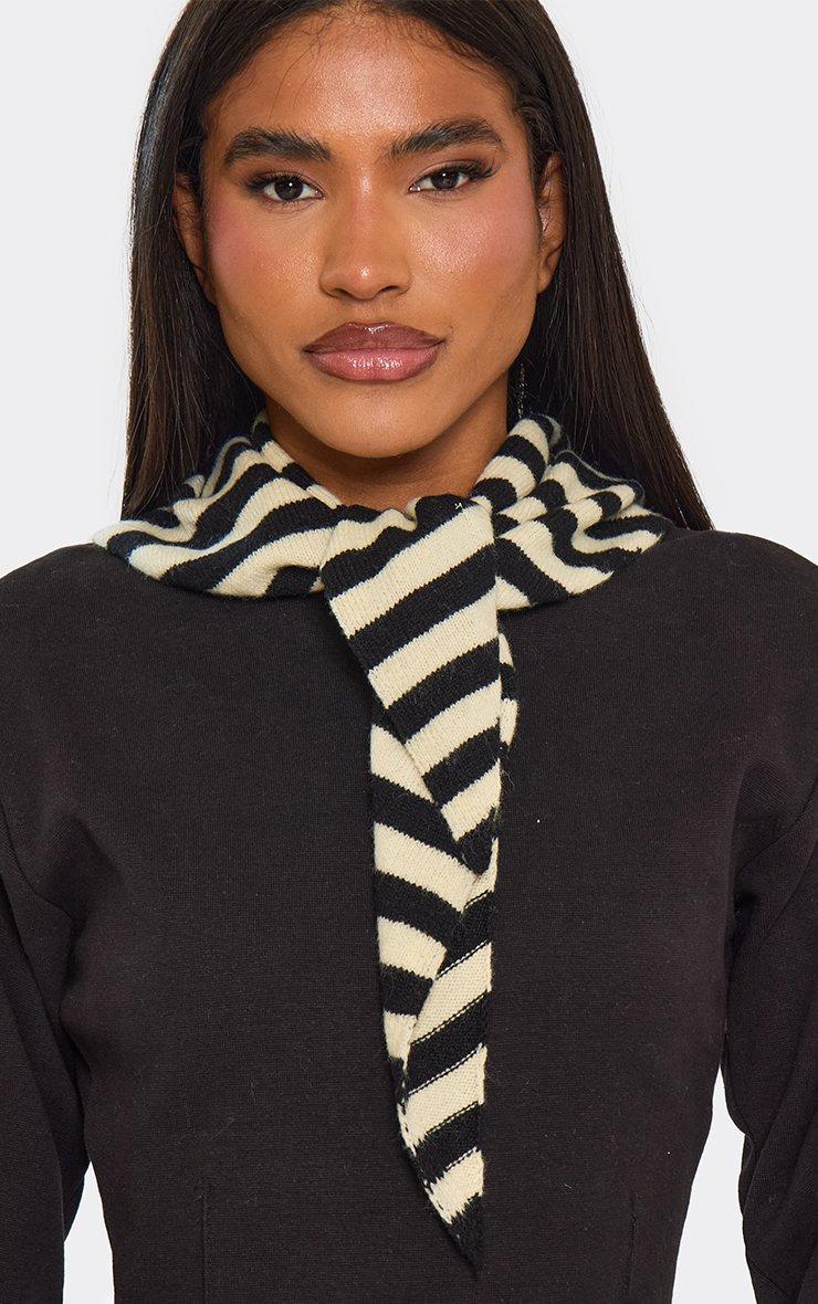 Tie Front Shawl Scarf In Black And Cream Stripe