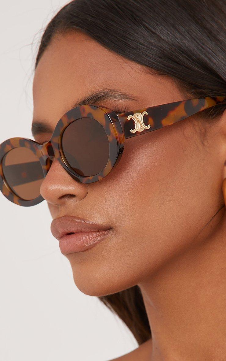 Oval Shape Logo Detail Sunglasses In Leopard Print