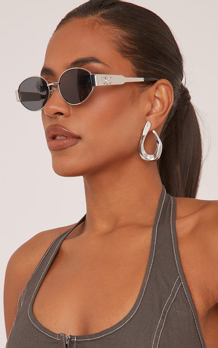 Oval Cateye Shape Side Detail Metal Frame Sunglasses In Gold