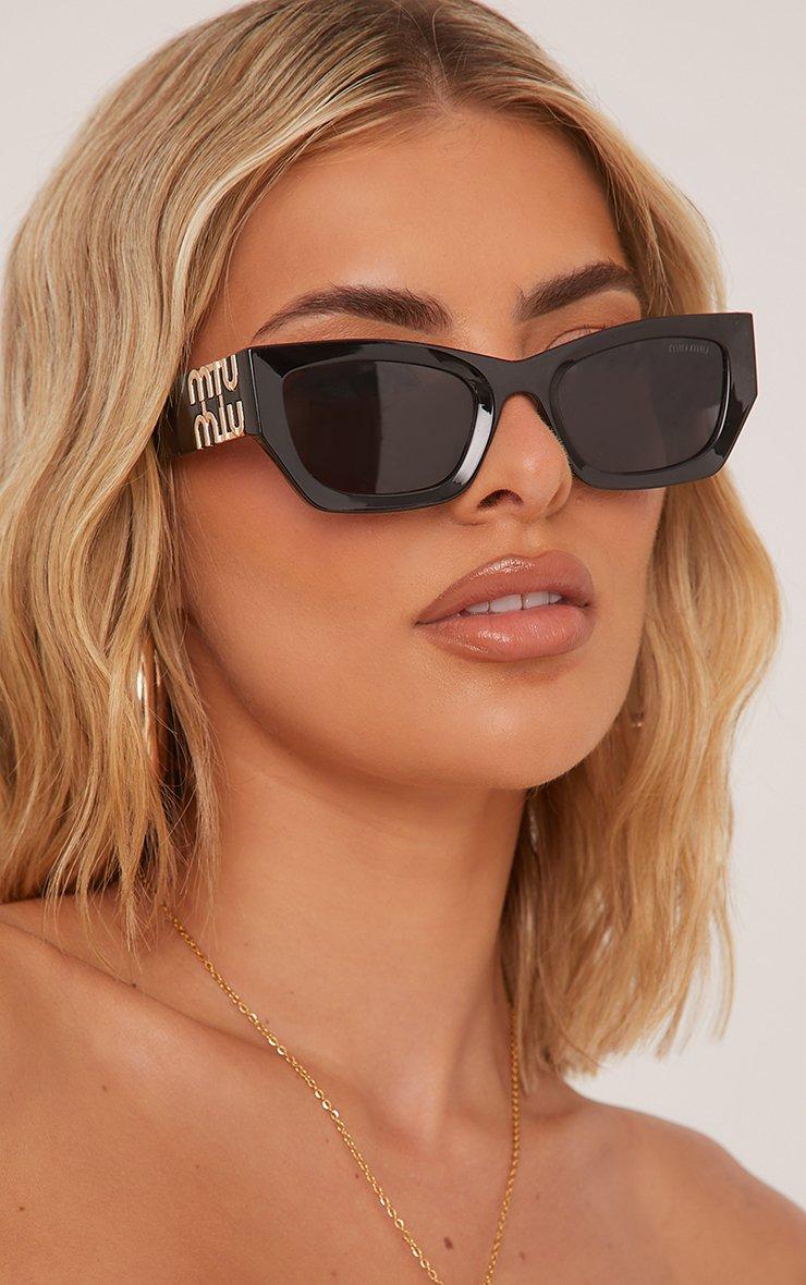 Side Logo Detail Cateye Square Shape Sunglasses In Black