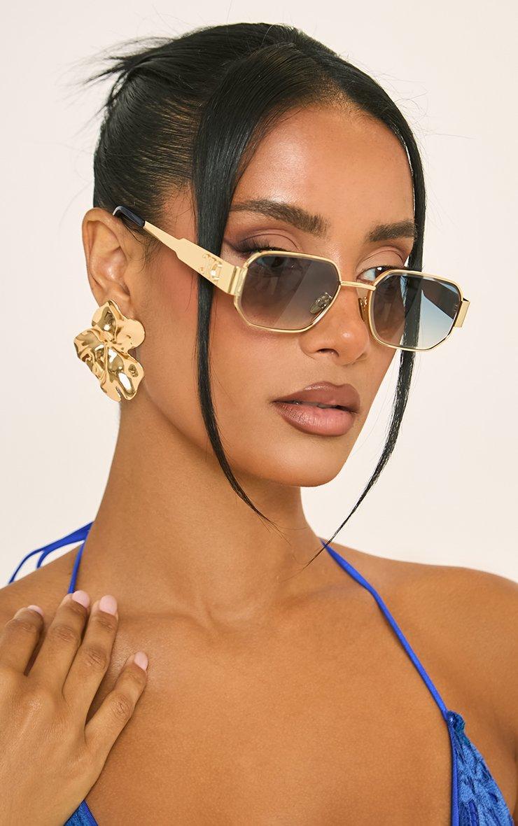 Side Logo Detail Shaped Sunglasses In Brown And Gold