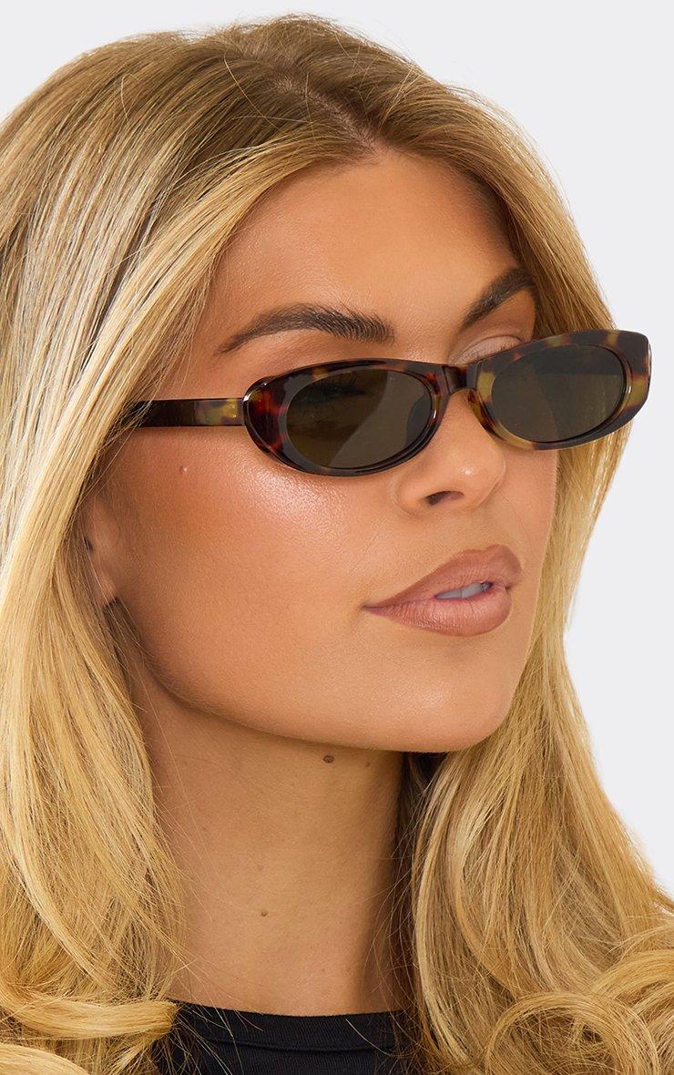 Oval Cateye Shape Side Detail Sunglasses In Leopard Print