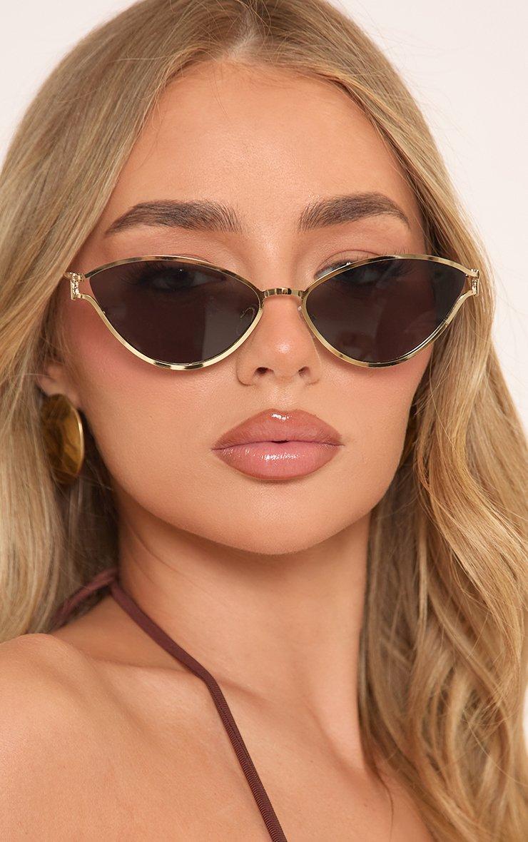 cayeye shaped thin metal frame sunglasses in gold and brown