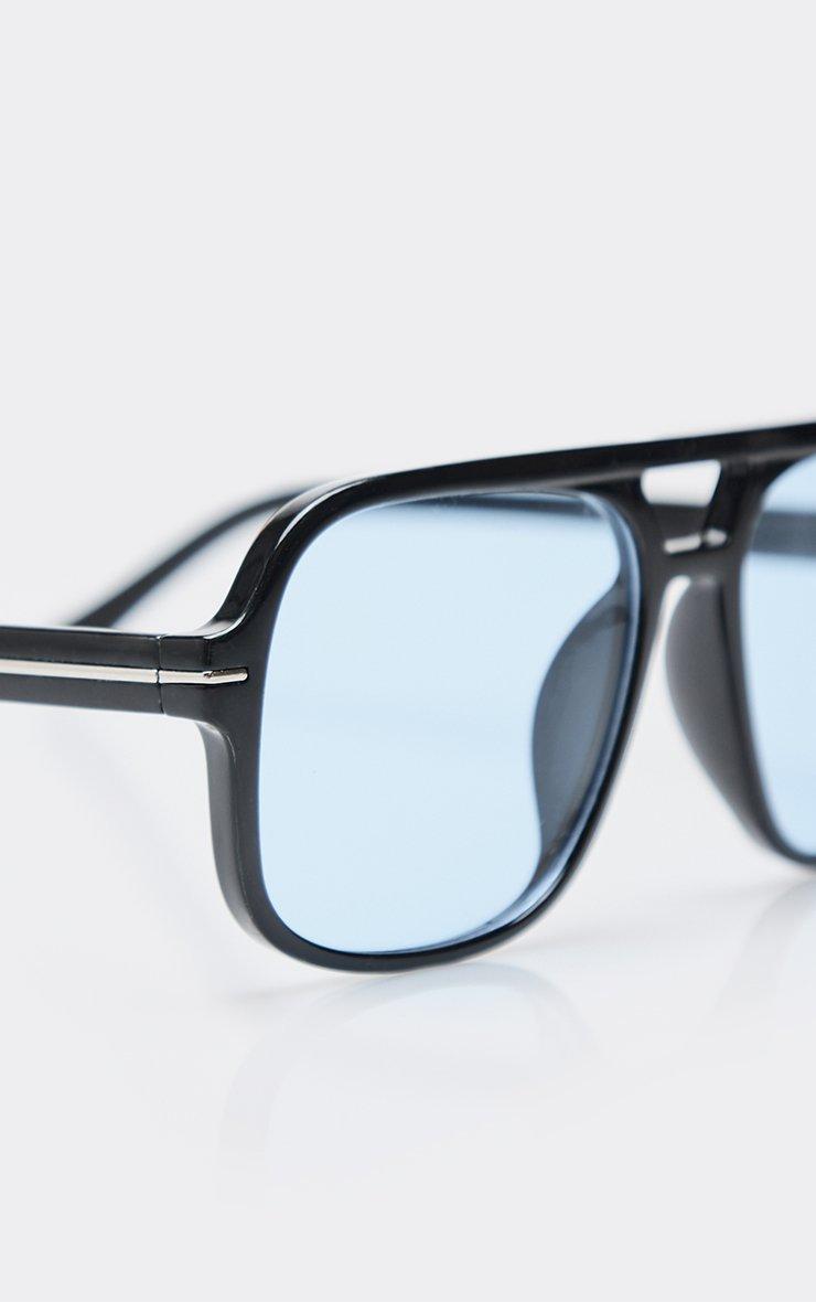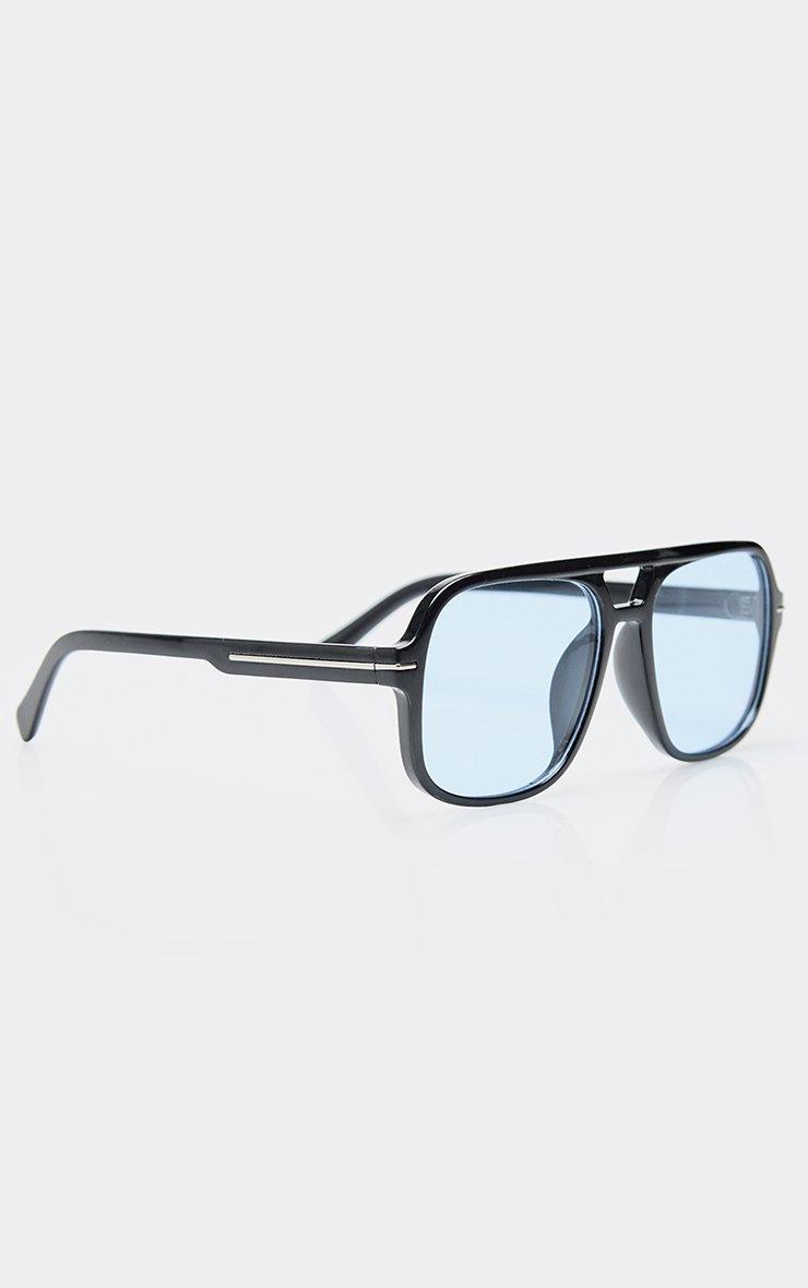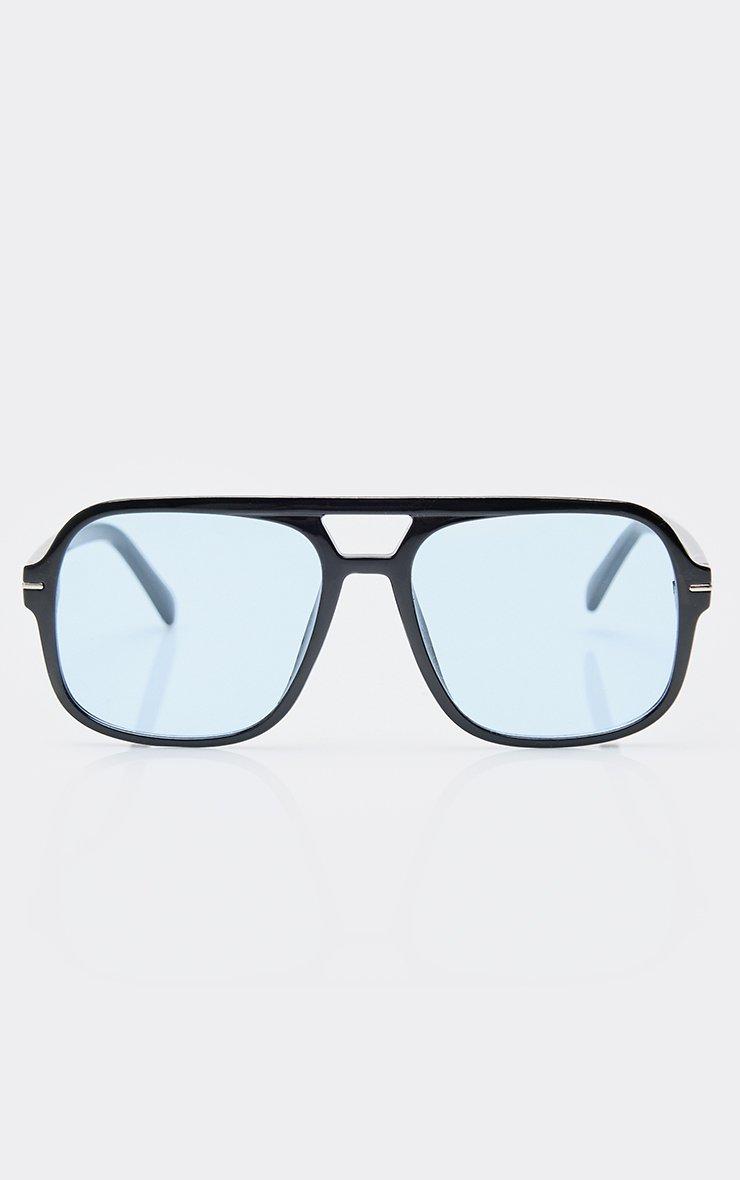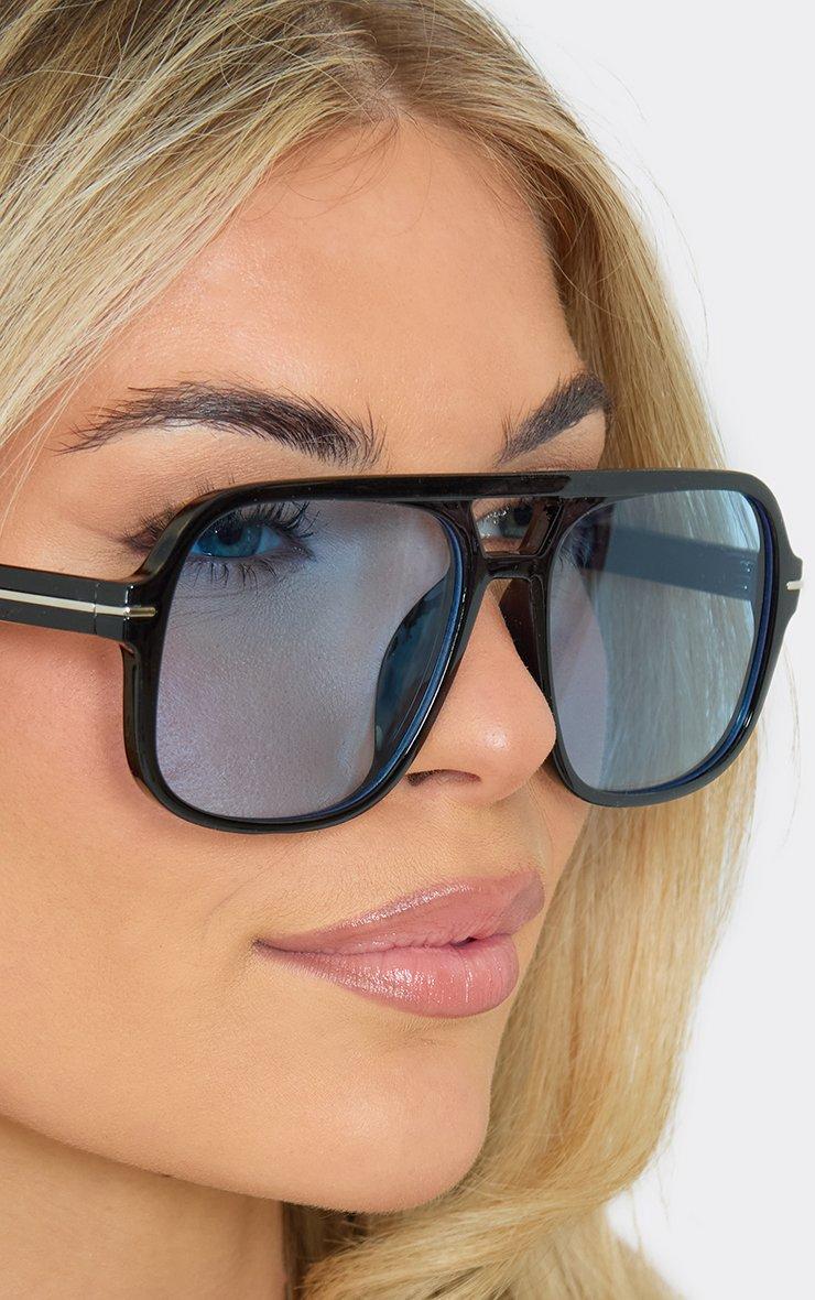 Oversized Blue Tinted Lense Aviator Style Sunglasses In Black