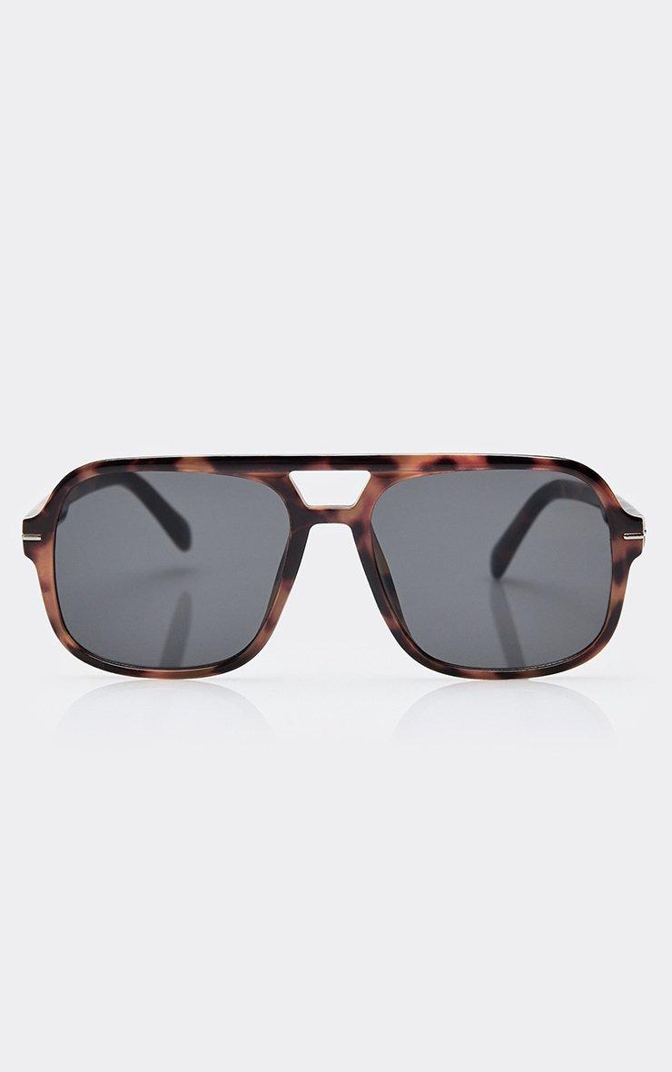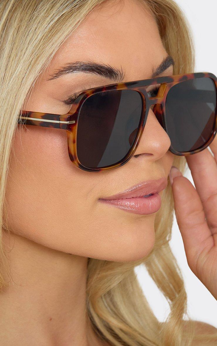 Oversized Tinted Lense Aviator Style Sunglasses In Leopard Print