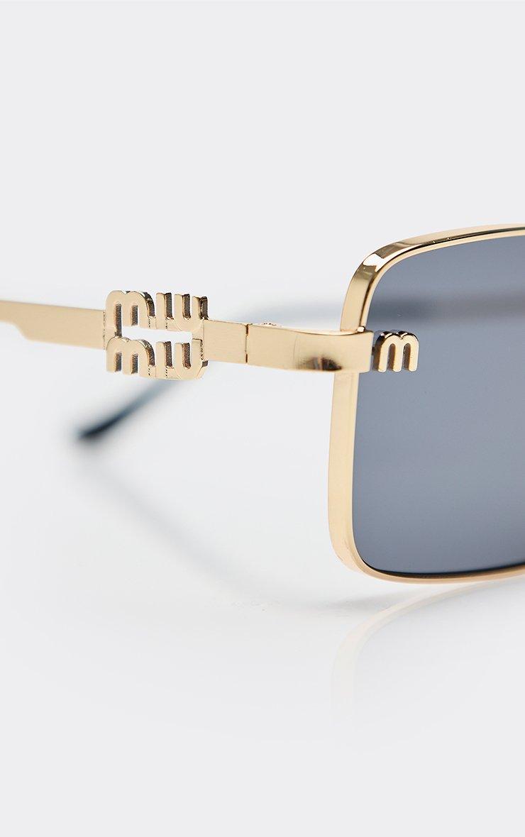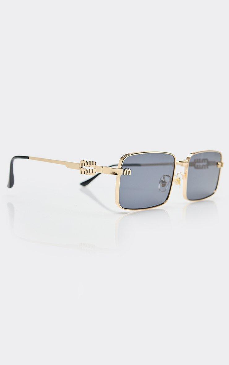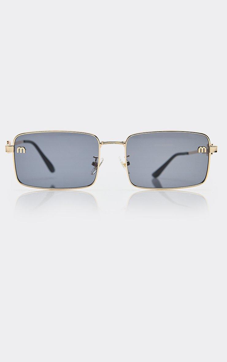 side logo thin gold frame rectangle shaped tinted lense sunglasses in black