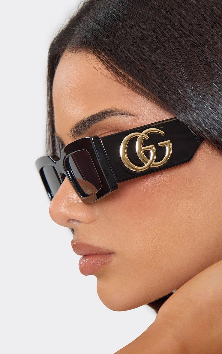 Side Logo Detail Thick Framed Square Shaped Sunglasses In Black