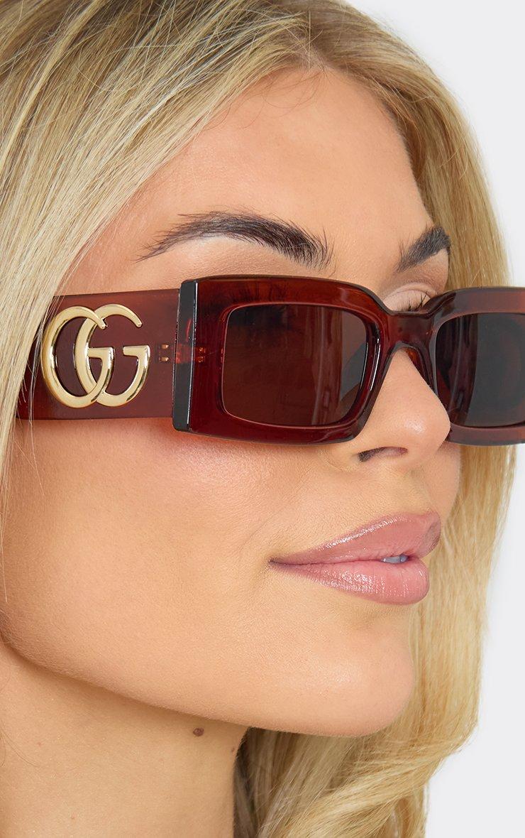 side logo detail thick framed square shaped sunglasses in brown