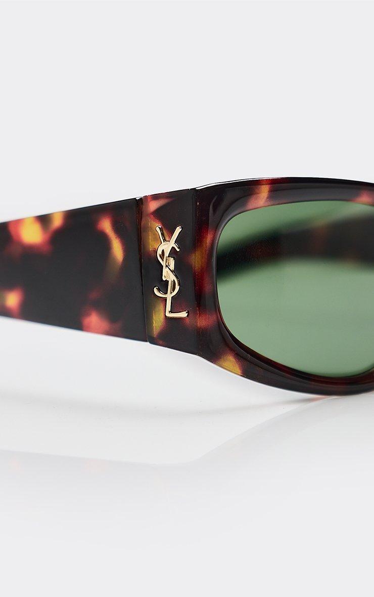 side logo thick framed tinted lense sunglasses in leopard print