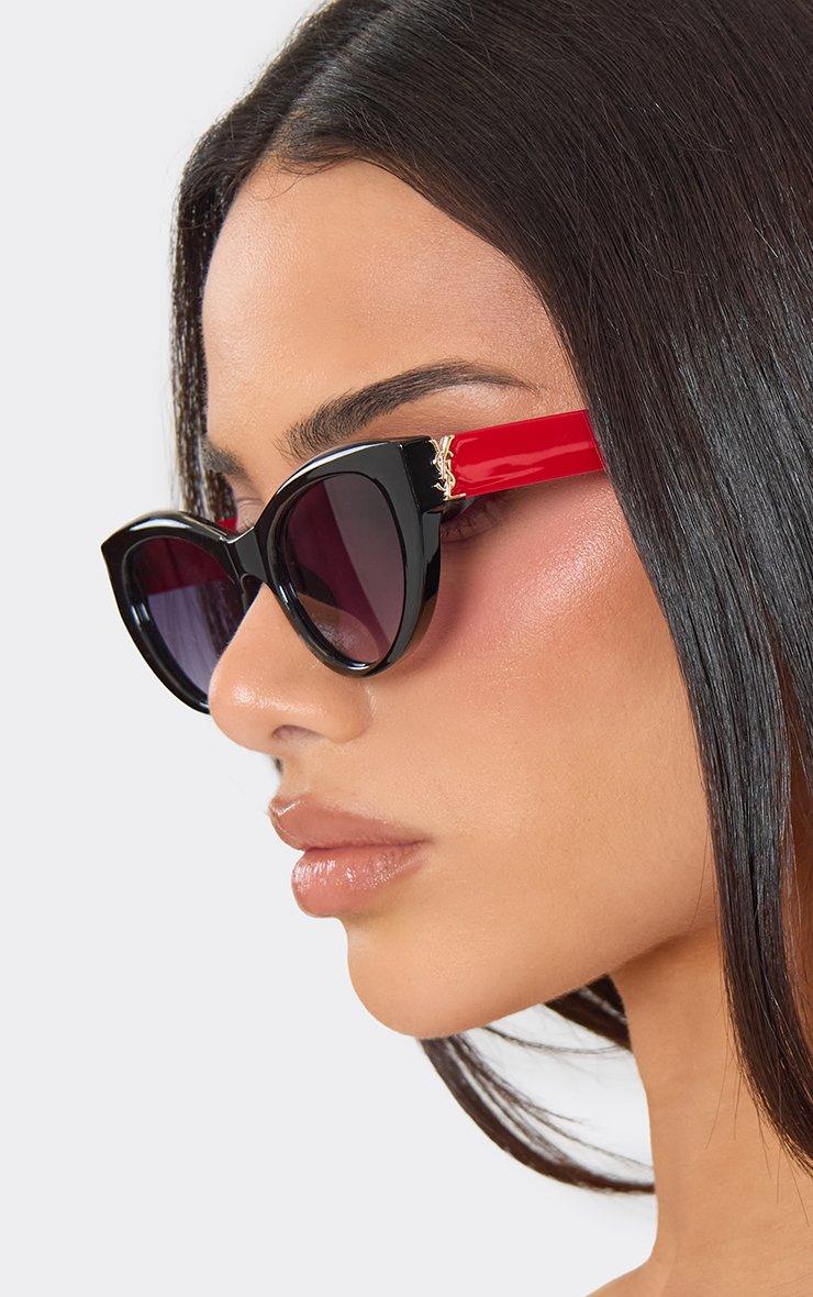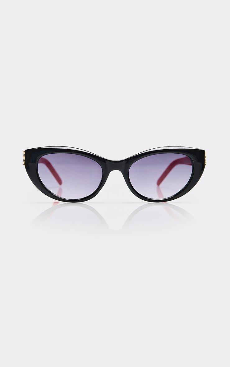Side Logo Cat Eye Shaped Thin Contrast Framed Sunglasses In Red