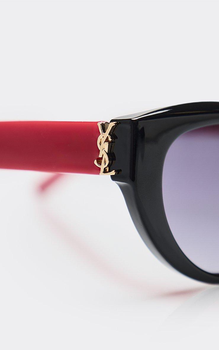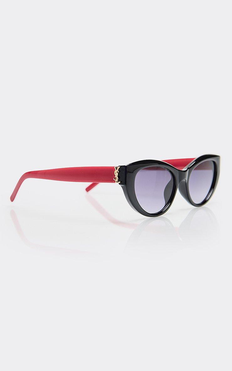 side logo cat eye shaped thin contrast framed sunglasses in red