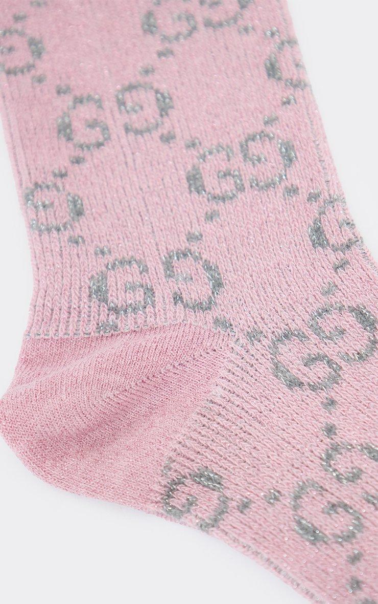 Pink Logo Detail Ankle Socks In Grey