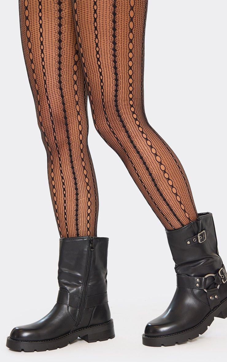 Lace Trim Diamante Detail Stockings In Black Fishnet
