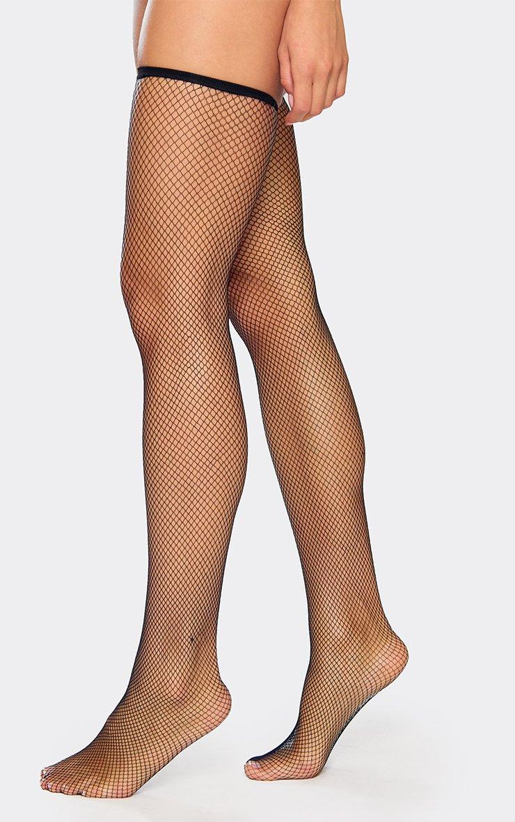 Piping Detail Tights In Black Fishnet
