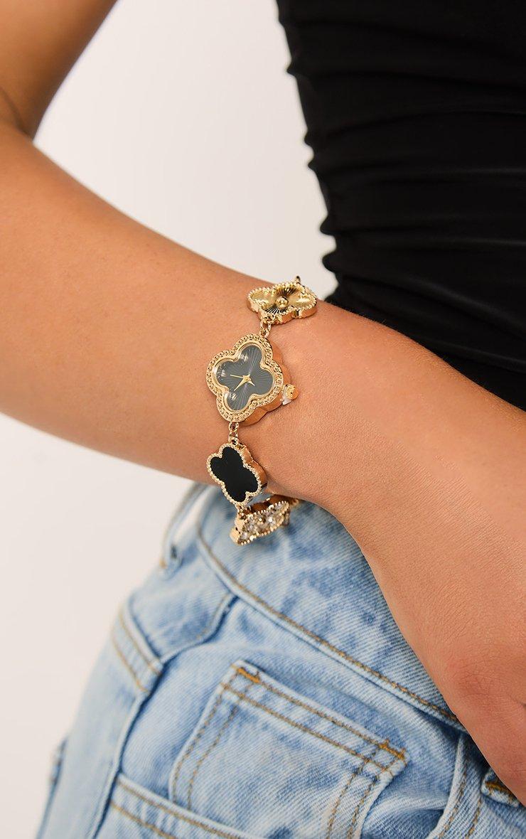 clover detail watch in black and gold